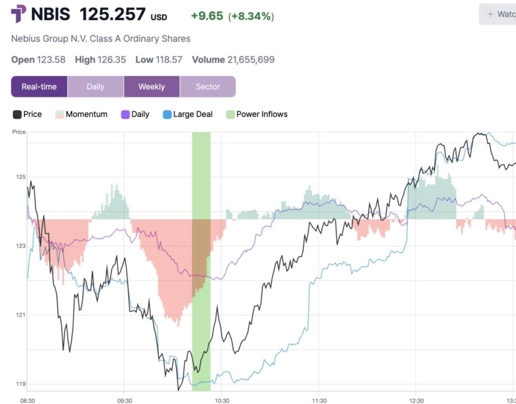 Nebius Group N.V. (NASDAQ:NBIS) experienced a significant Power Inflow alert, a key bullish indicator that is closely tracked by traders who value order flow analytics, specifically institutional and retail order flow data.