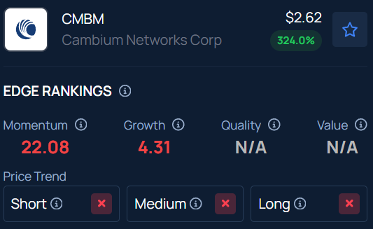 Benzinga Edge Stock Rankings indicate that CMBM has a negative price trend across all time frames. Track the performance of other players in this segment.