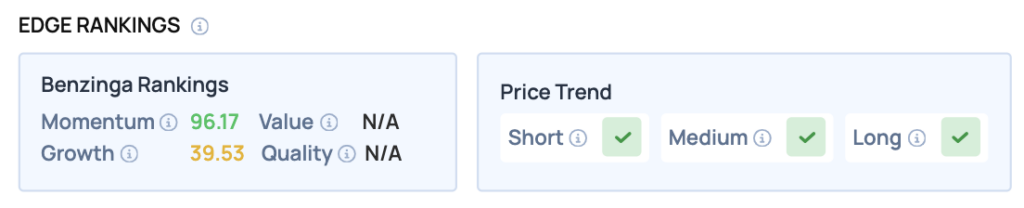 Benzinga Edge Rankings: According to Benzinga Edge rankings, Riot Platforms boasts an exceptionally strong Momentum score of 96.17.