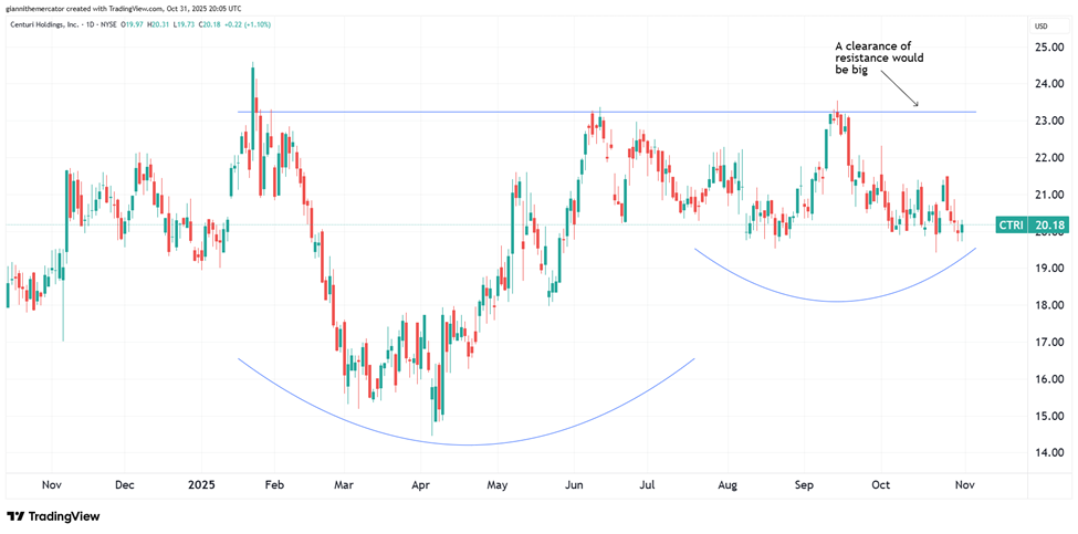The ratio is still coiling within the rounding bottom formation. I'm looking for a break above the upper horizontal trendline of the pattern to confirm that the Chinese market is going to ignite to the upside. This could be a major theme of 2026.