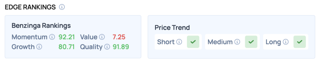 Benzinga Edge Rankings: Benzinga Edge stock rankings, which help identify strong and weak stocks, give Celsius high marks for Momentum (92.21) and Growth (80.71), but a very low Value score of 7.25.