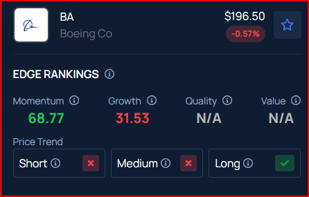 Benzinga's Edge Rankings place Boeing in the 69th percentile for momentum and the 31st percentile for growth, reflecting its strong performance in both areas. Check the detailed report here.