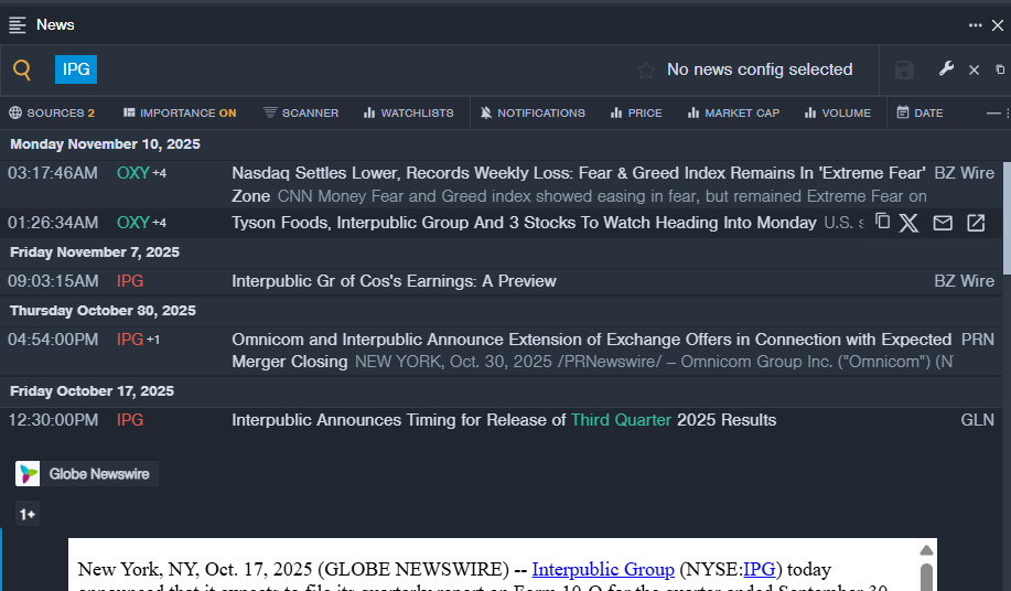 Benzinga Pro's real-time newsfeed alerted to latest IPG news