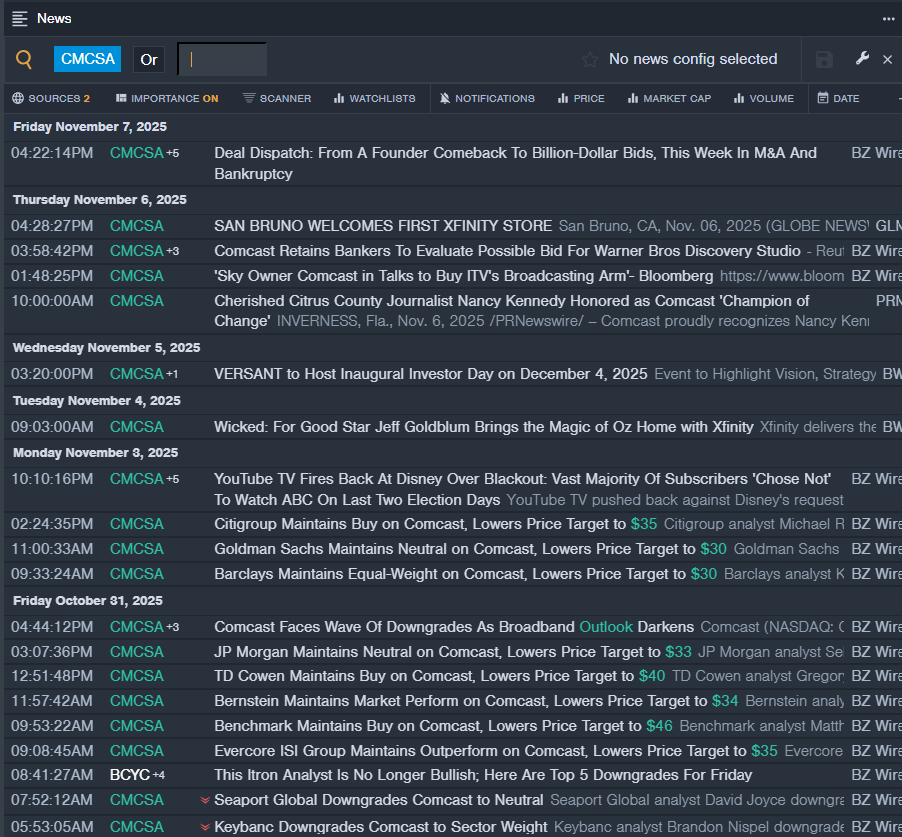 Benzinga Pro’s real-time newsfeed alerted to latest CMCSA news