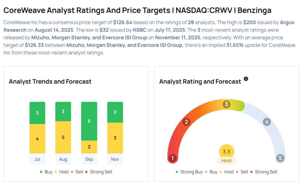 CoreWeave reported third-quarter revenue of $1.36 billion, beating analyst estimates of $1.29 billion, according to Benzinga Pro. The company reported a third-quarter adjusted loss of eight cents per share, beating estimates for a loss of 37 cents per share.
