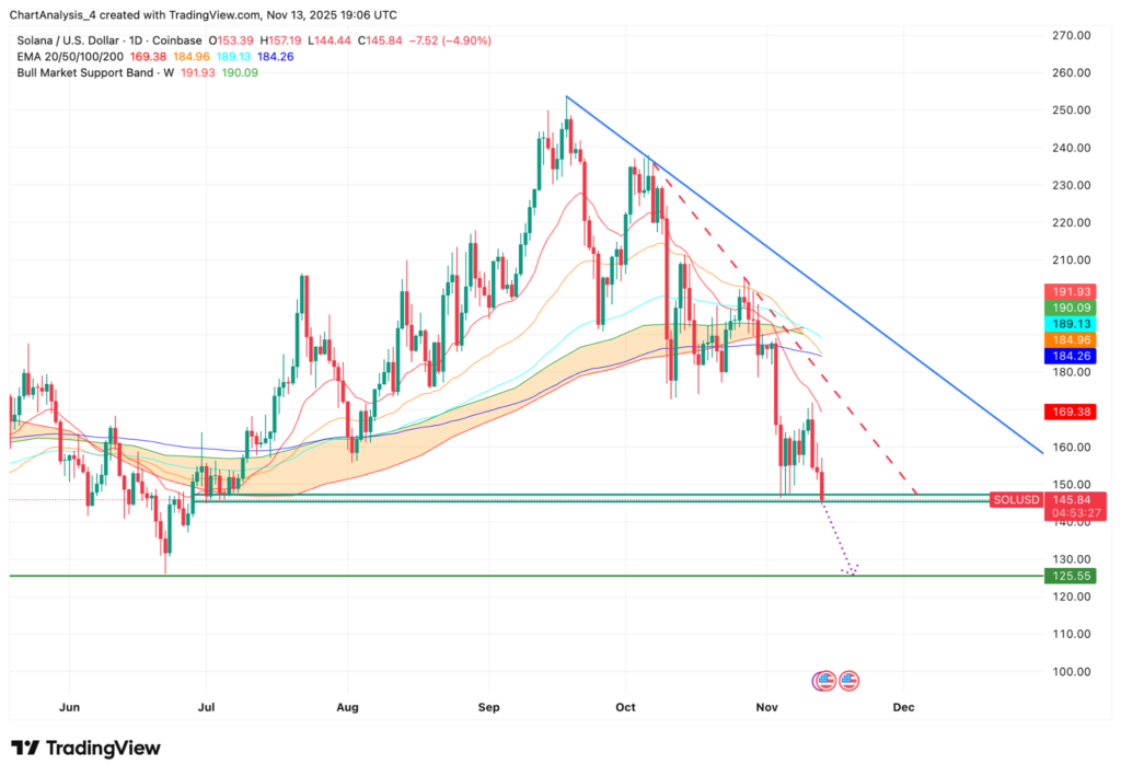 Solana broke below the $150 level after failing to hold the mid-range support that marked the market's July floor.