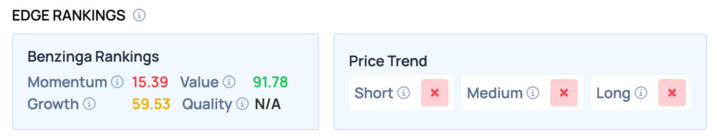 Li scores well on the Value metric, while offering satisfactory Growth, but poor Momentum. For more such insights, sign up for Benzinga Edge Stock Rankings today!