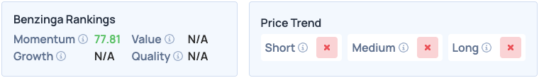 Shares of the company are up 4.72% overnight, following the announcement of the deal. According to Benzinga’s Edge Stock Rankings, the stock scores high on Momentum, but has an unfavorable price trend in the short, medium and long terms. Click here for deeper insights into the stock, its peers and competitors.