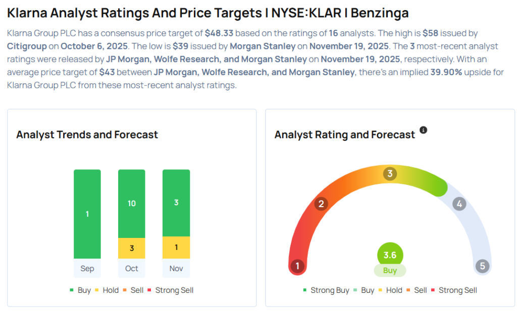 Looking ahead, Klarna set fourth-quarter revenue guidance of $1.065 billion to $1.08 billion, which is higher than the $1.058 billion estimate. Despite the better-than-expected results, shares were down almost 10% at last check, according to Benzinga Pro.