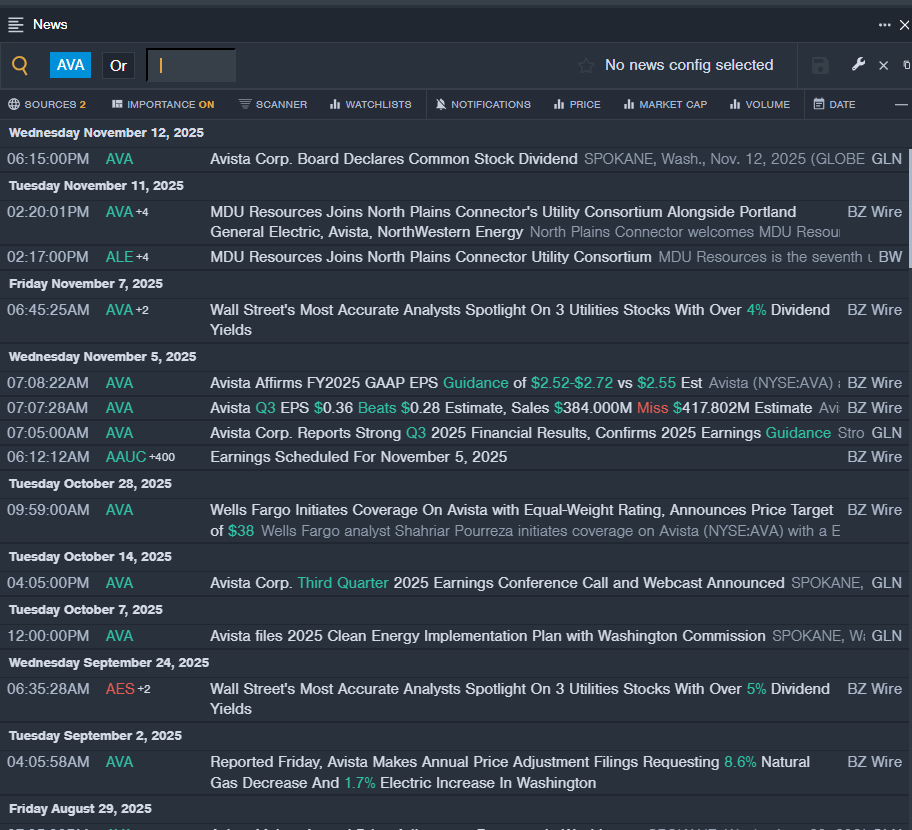 Benzinga Pro's real-time newsfeed alerted to latest AVA news