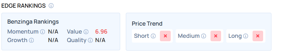 According to Benzinga’s Edge Stock Rankings, the stock lagged on the Value metric and was in a downward trend in the short, medium, and long term. Find out more here.