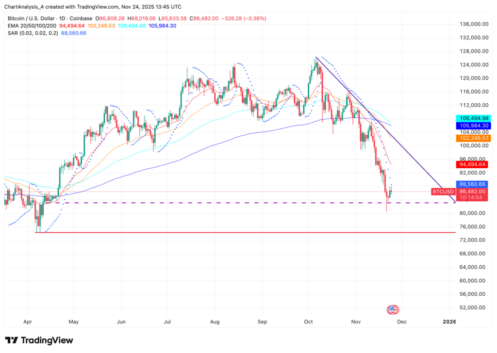 A daily close above $88,000 would ease short-term pressure, but a decisive shift requires a break through $94,000.