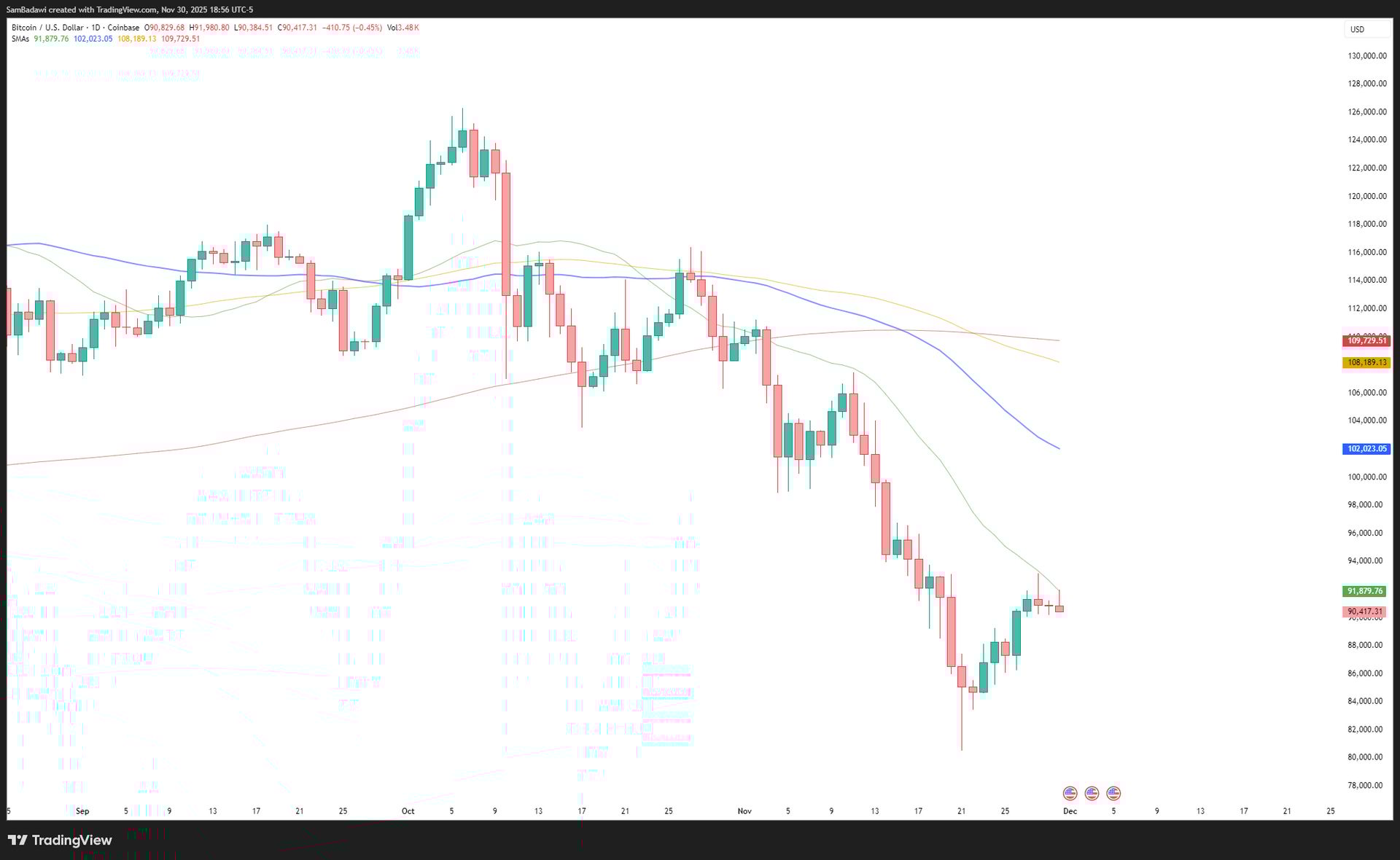 If you loved BTC at 126k, you should love it at 90k… but traders need confirmation, not hope. Until BTC reclaims major moving averages and ETH breaks its downtrend, this remains a "prove it" setup.