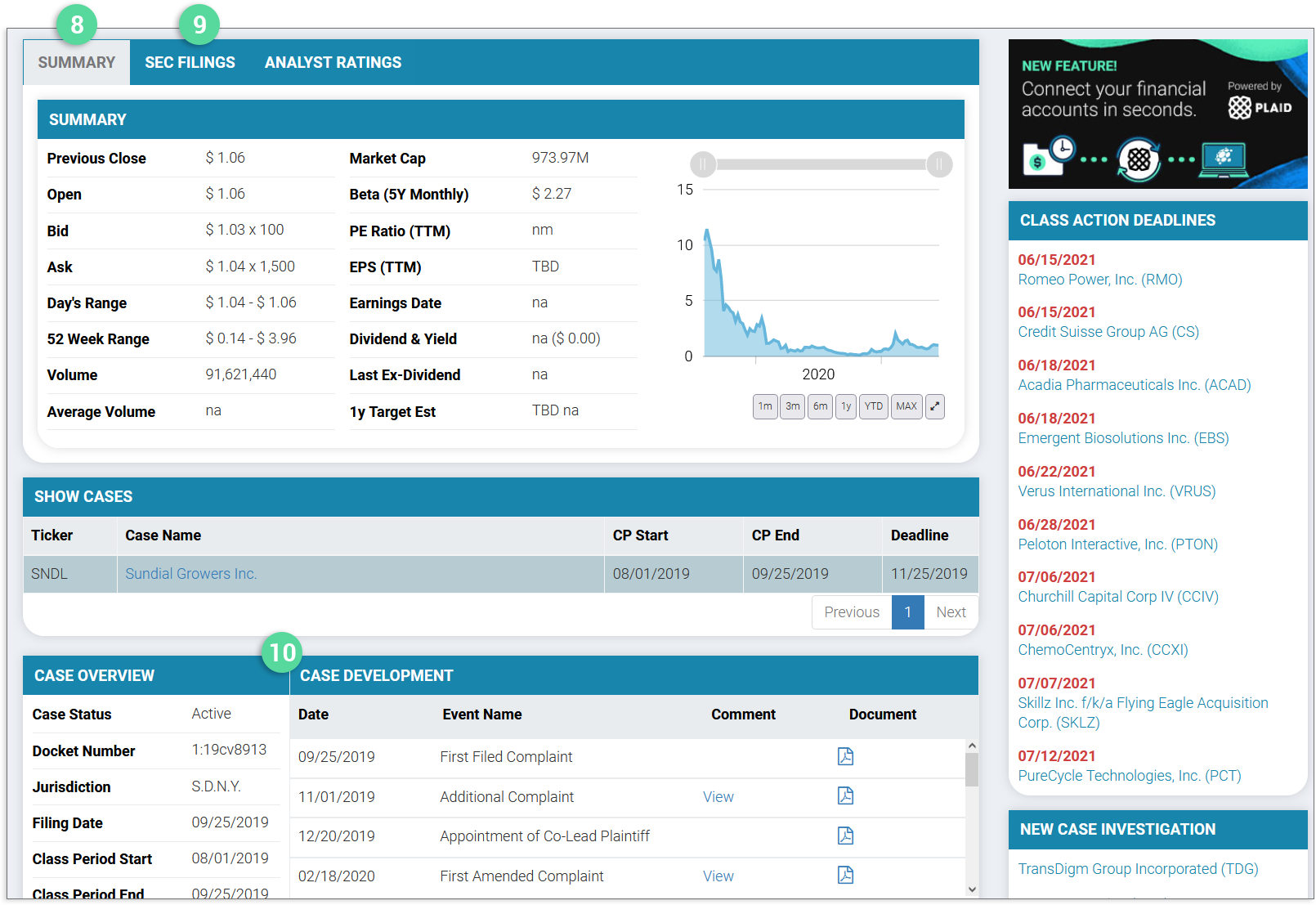 - Litigation Risk - Track all securities class actions affecting your portfolio